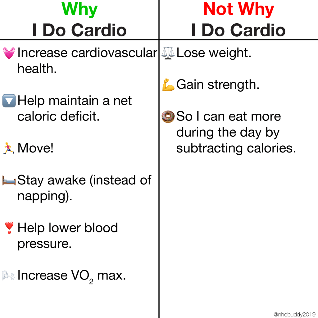 I explained this a bit in this introductory post, but I thought I’d post this “meme” I tried to make. It’s not that polished, but I think it explains well why I opt to do cardio when so many places out there emphasize “You don’t have to do cardio for weight loss!” (since most people hate it)