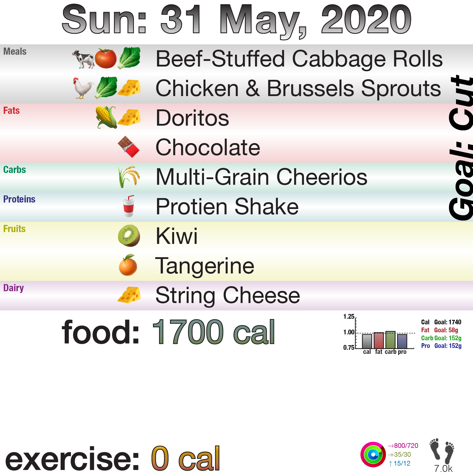 May 31 brings lots of stuff due on June 01, so I spent 9 hrs working and with other stuff had no time to exercise. I still got my rings because the rower and elliptical last night carried into this morning, so that was a saving grace. Tomorrow is going to be more of the same, at least until later in the night, with 5 hrs of telecons, not having finished two reports due (not even having started one), and the dinner I plan to make takes 2 hrs of active prep (chicken biryani, चिकन बिरयानी).