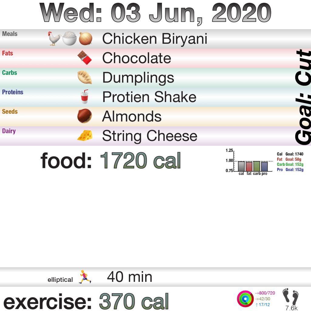 For example, tonight was another night where I had repeating alarms going off every few minutes, and I finally made it down to the elliptical at 11:21pm to get in my 40 minutes and make sure I was there enough to close my rings. Before starting, I was tempted to stop as soon as I closed them all. I didn’t because I fortunately chose stuff to listen to and then watch that took me to 38.5 minutes, so I just kept on another 90 seconds to get my goal of 40 minutes of cardio a day, 5 days per week.