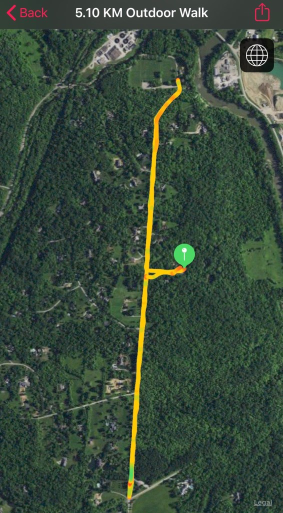 For my walk, I wanted to tackle something that, as a child, we always drove. I would bike down, but walk my bike up. But after all my walking at home on the mountain, I figured this would be quite easy. Or, not as big an issue. Over Thanksgiving last year, I was huffing and puffing bigly, and I had to pause a few times. Heading north first, downhill, then south back uphill, I was breathing pretty heavily, and sweating, but I managed to do it without pausing, and while keeping my pace at better than 11 min/km (the worst kilometer of the 5.1 km walk was that uphill part, at a pace of 10 min 55 sec per km). That’s better than when at home doing the steepest hills. But, this hill was not as steep and we’re closer to sea level, so 741 ft vs 6180 ft is a big difference when it comes to air.