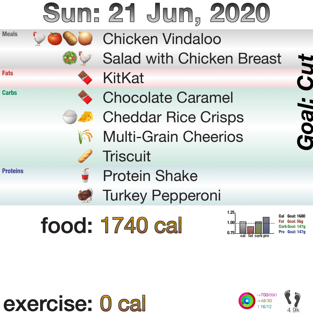 From Sunday’s infographic, there was a fair bit of chocolate, and my dad wanted me to try his rice crisps (misspelled … don’t care) before I left. Otherwise, it was mostly car food, though I had salad when I got to the MIL’s house in Michigan while the bf and she had steak. I then was working 6pm until 3am.