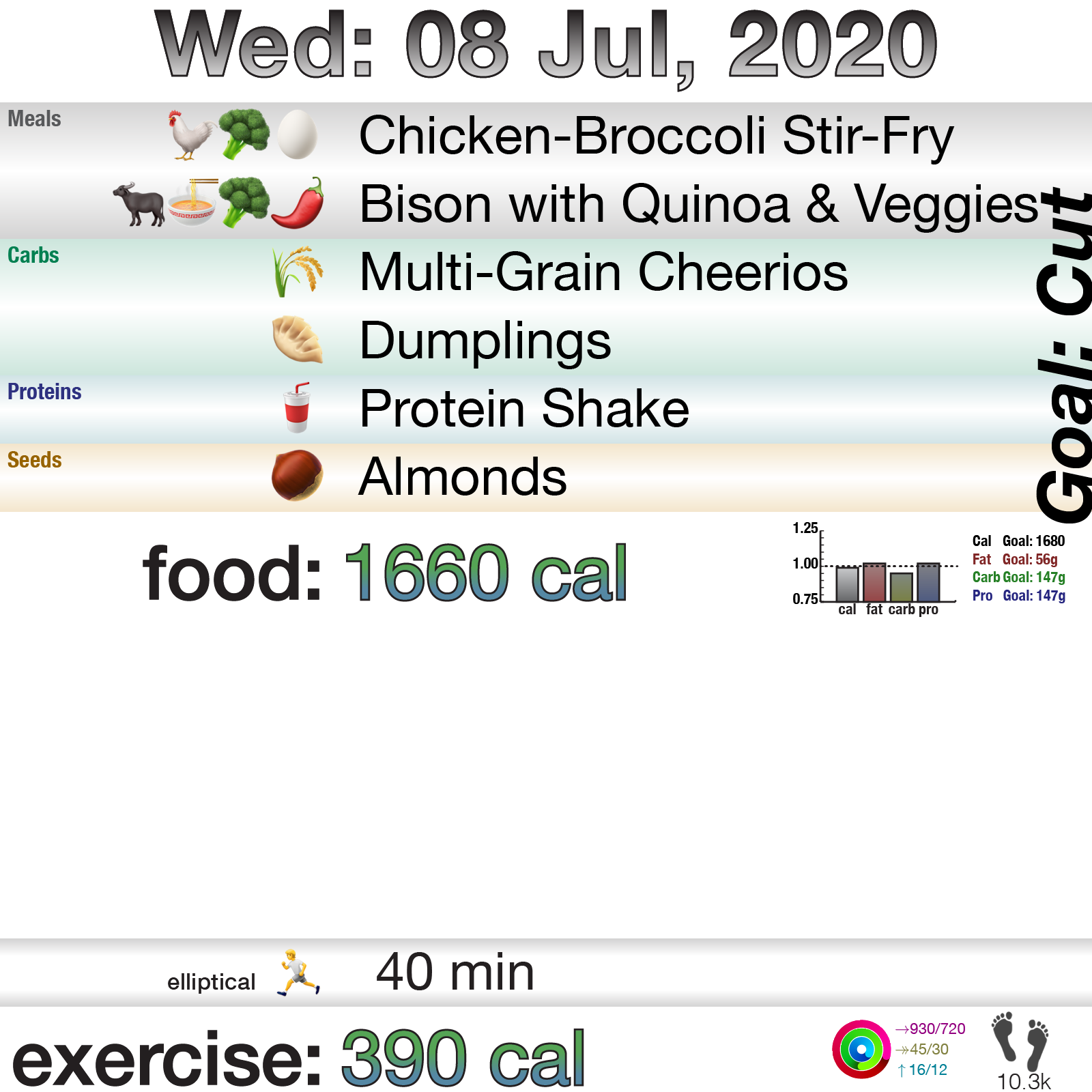 So I tried to take it easy and only did the elliptical at the last minute (11pm) and had to take it easy. It wasn’t hurting as much after about 15 minutes.