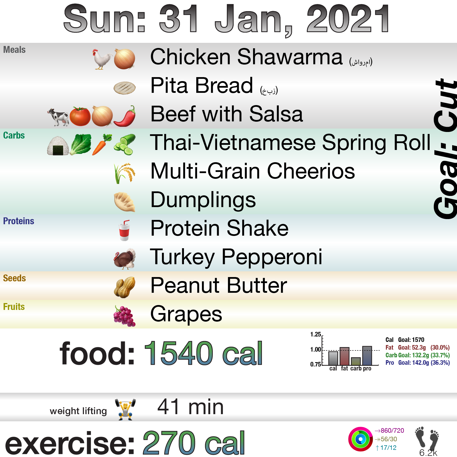 So, three updates above for the first three days of this week. I stuck fairly well with the food plan, needing to shift a few things as the days went on. I had left-overs Sunday and then made beef with salsa, which makes four servings and I’ll continue to eat through today, Wednesday. I made chicken biryani on Monday and that’s also something I’ll continue to eat through today, Wednesday. With two main meals set, that makes filling in the gaps a bit easier.