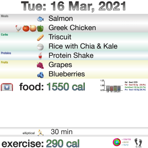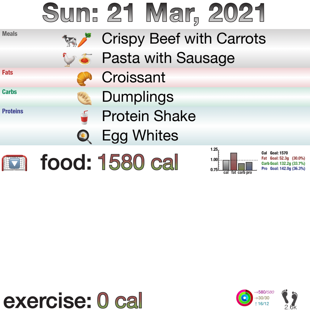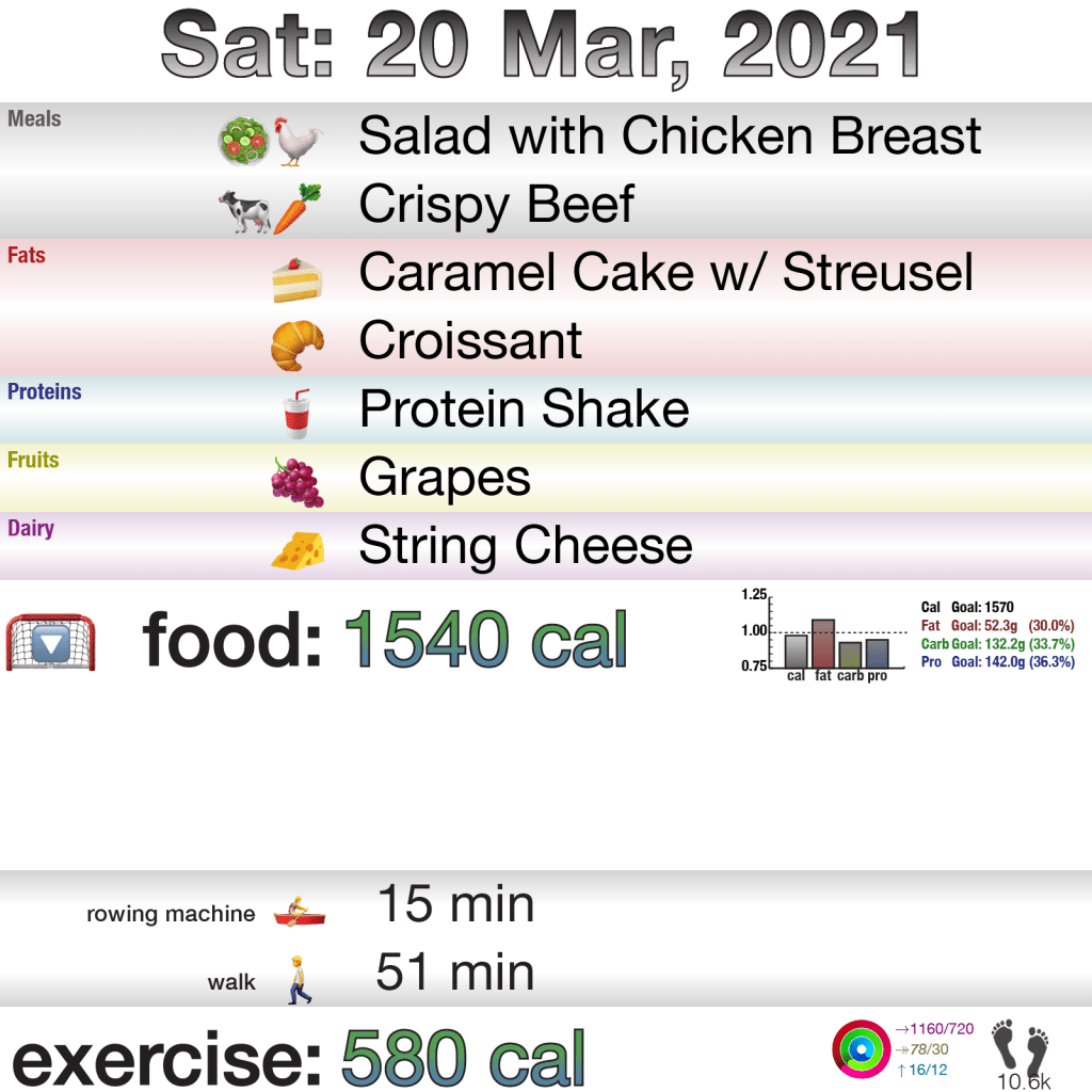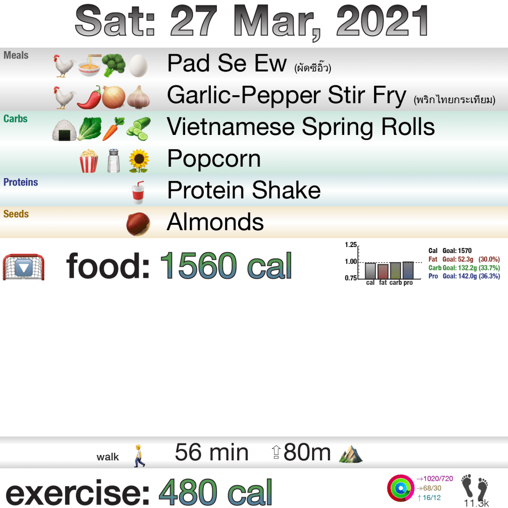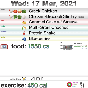 This week was almost all spent programming and debugging. Lots of it. I still managed to lift twice, and get out for a brief walk on Thursday (I was sick of being inside so I said to myself, “I’m not going to waste this fleeting motivation to get outside” and so I did a brief, 17-minute walk). I managed to stick reasonably within my goals, at least on the aggregate for the week, for food.