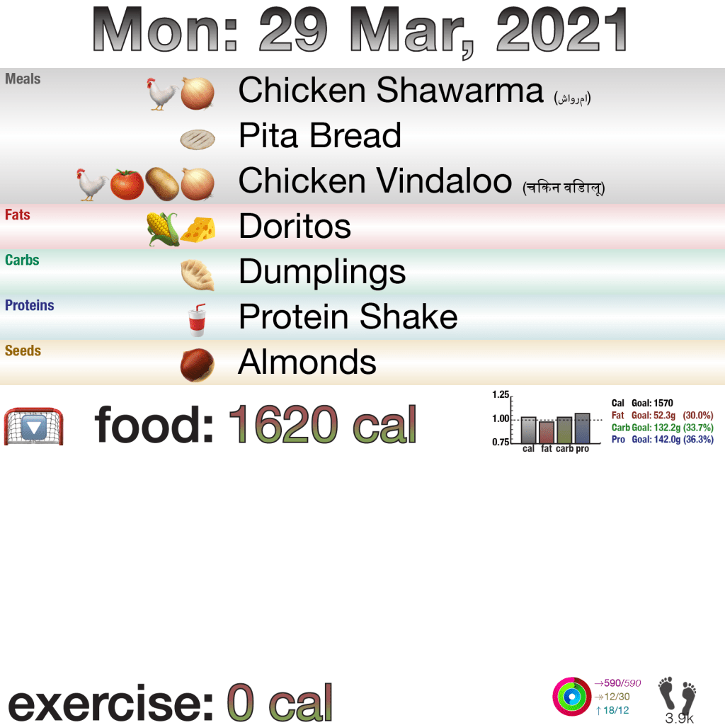 That aside, the exercise was 800 calories, the most in one day in months. I also did more than 4x my exercise ring and was just 40 calories short of doubling my move ring on my Apple Watch.