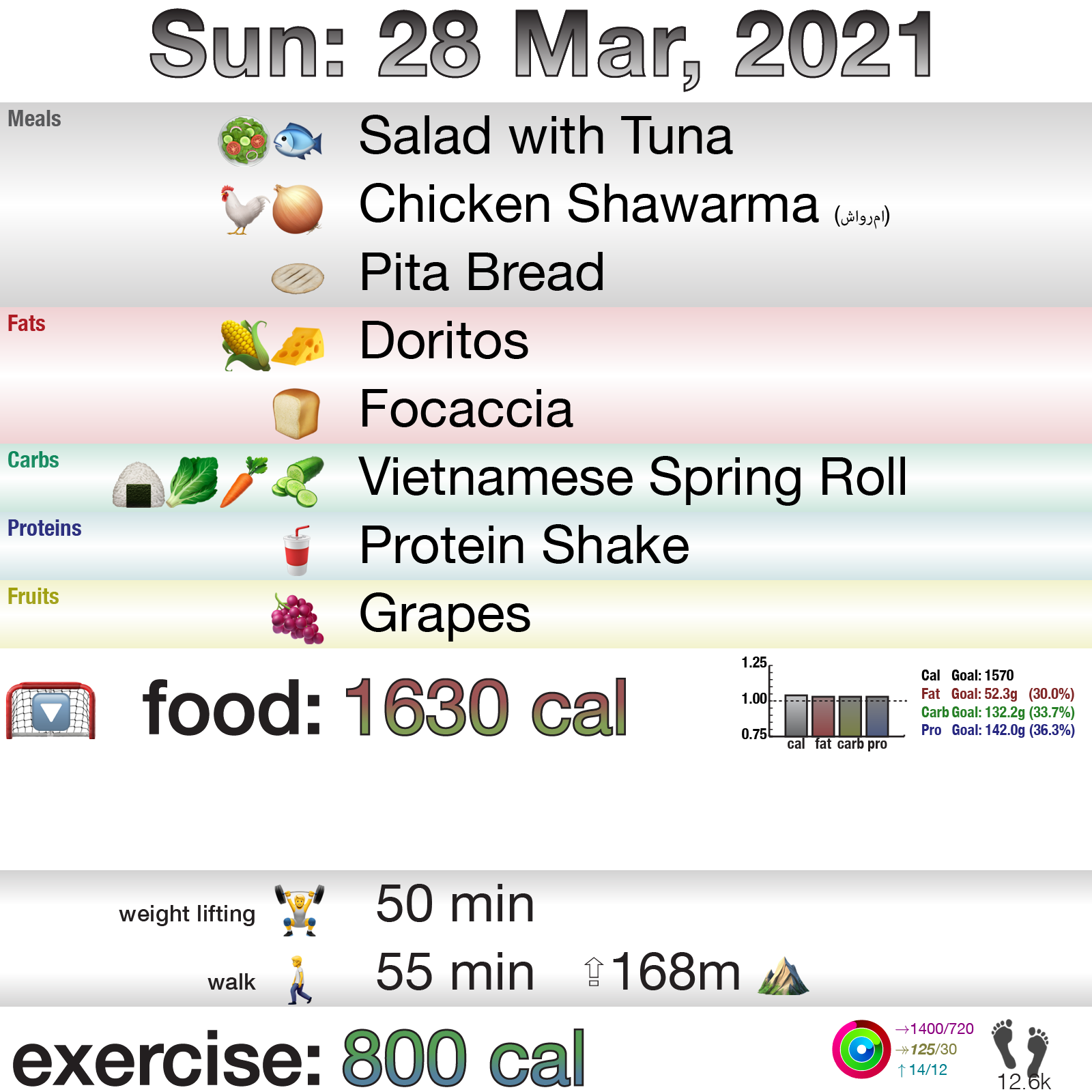 I feel pretty good about Sunday. While calories were 60 high, I was still within my 5% allowance, and I spread my food very well over my macros. I also made an extremely small focaccia bread loaf – so small it was in a loaf pan. I’d been craving it for the last few weeks even though I haven’t made it in over eight years, but I figured if I made a small enough batch, I could fit it into my nutrition goals, which I did.