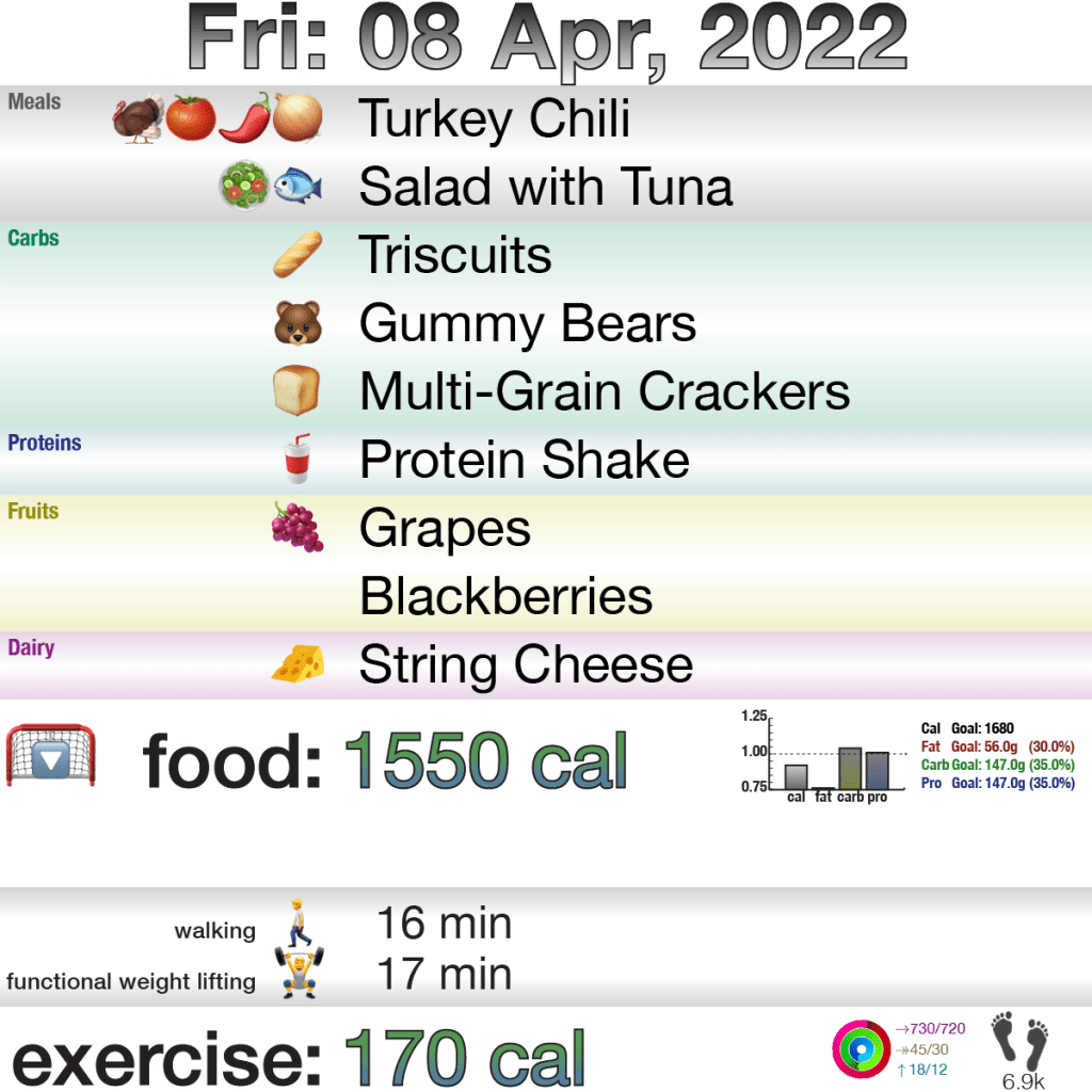 So, let’s start out with food for the last two days. I again tried very hard to count all the bites and nibbles and not move things around, but I am sure I did not quite catch everything so I am not going to give myself points for that (see next post). Like, I didn’t count a few grapes here-and-there, or a spoonful of watermelon. That in mind, I’m certainly getting better.