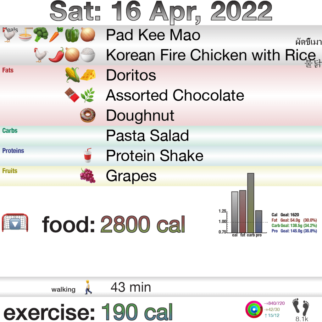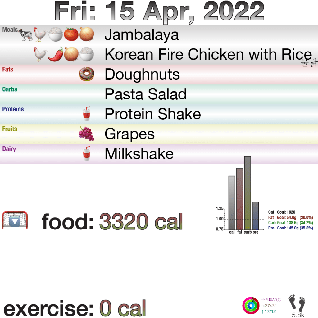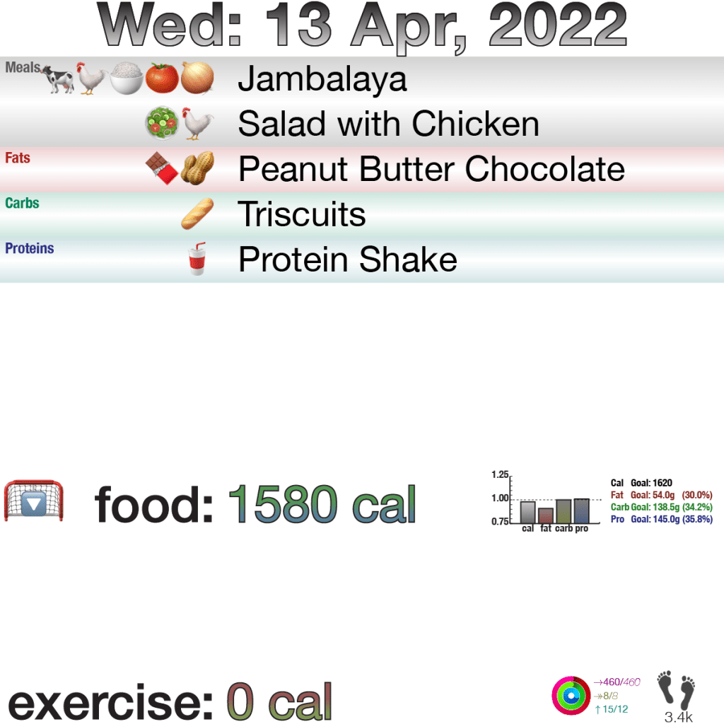 Posted without comment, although these probably should have asterisks on the calories. See previous post(s) for explanation of WTF happened on Friday. And I clearly cheated on my fitness rings.