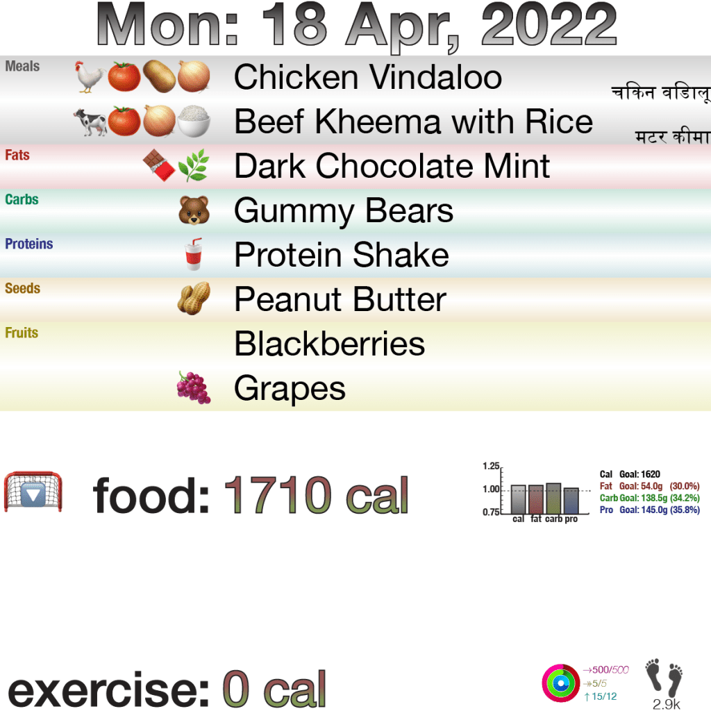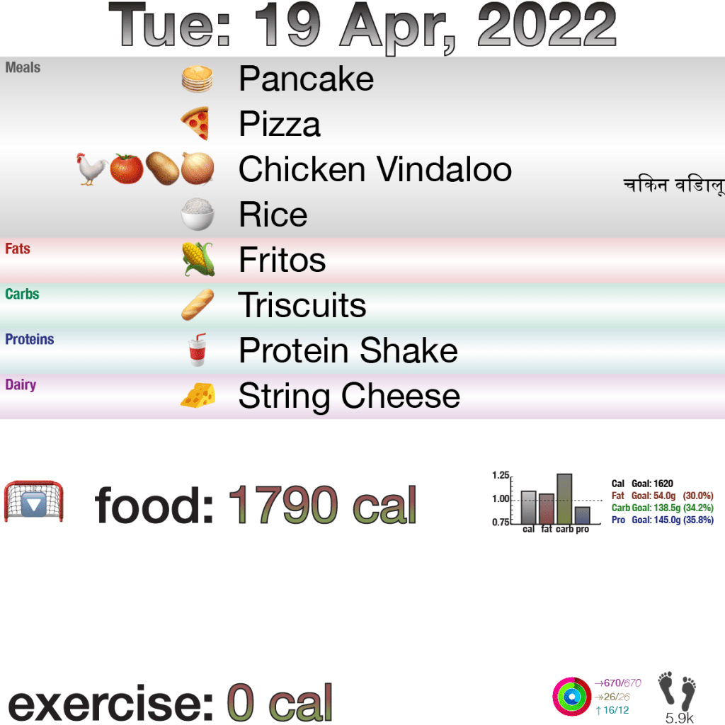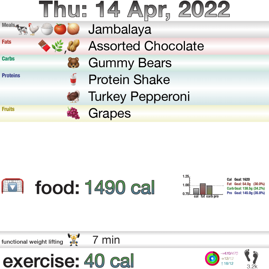 Posted without comment, although these probably should have asterisks on the calories. See previous post(s) for explanation of WTF happened on Friday. And I clearly cheated on my fitness rings.