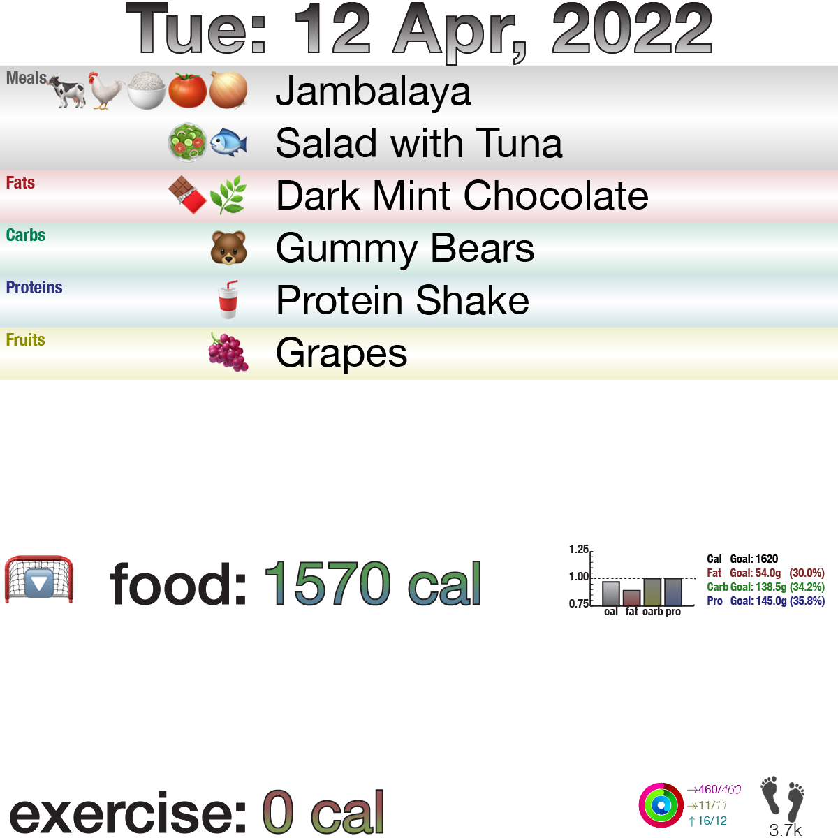 Posted without comment, although these probably should have asterisks on the calories. See previous post(s) for explanation of WTF happened on Friday. And I clearly cheated on my fitness rings.