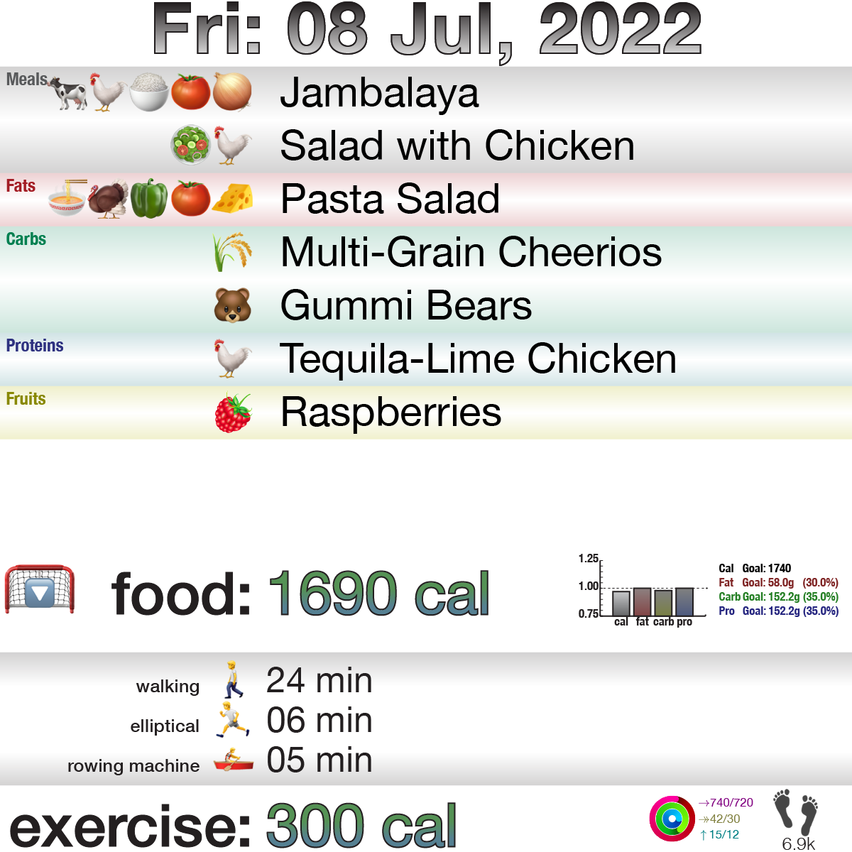 Because my walk was cut short, I did not get the requisite calories burned to close my move ring on my Watch. So, while checking on computer runs in the basement, I did a few minutes on the rower and a few minutes on the elliptical to close that ring. At least I didn’t cheat!