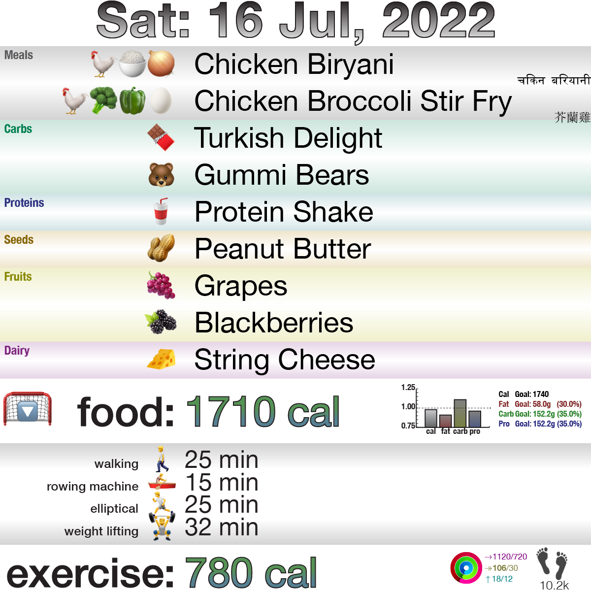 As noted in my post from yesterday (written less than eight hours ago), this morning was unpleasant with my weight going back up, higher than yesterday’s going up. And, I had eaten a fair bit of “miscellaneous” stuff (half of which you see on today’s infographic) between midnight and 4am.