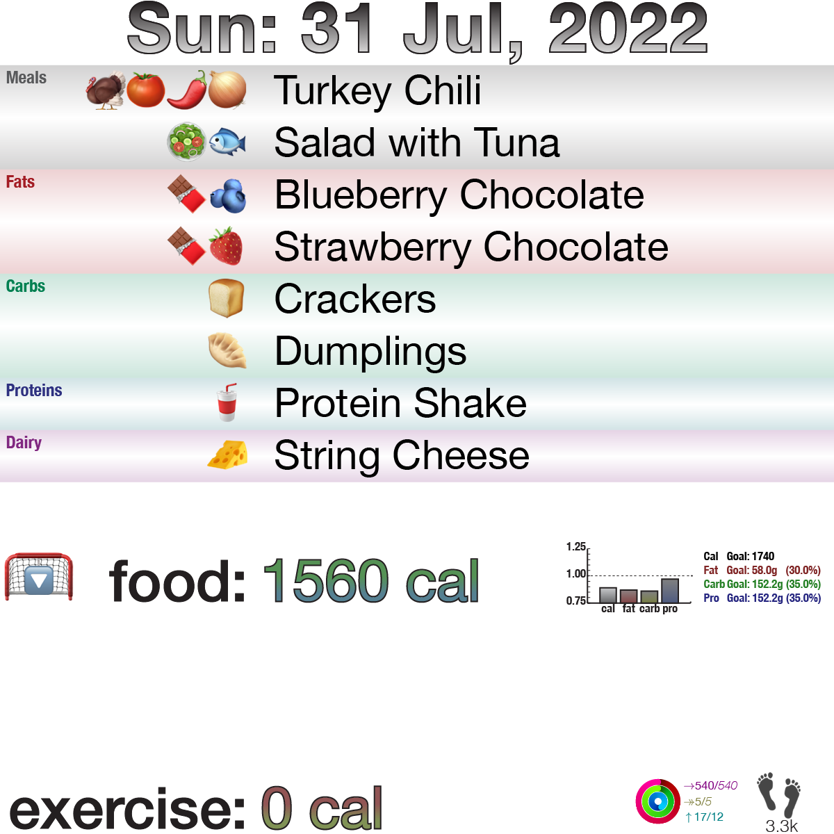 I mentioned that Friday night into Saturday morning, I decided to get back to filled chocolates and tried making some caramel-filled chocolates. Try #2 was blueberry ganache -filled semi-sweet chocolates, Saturday night into Sunday morning. Try #3 was the same thing but strawberry and a mix of dark and semi-sweet chocolate. Turned out well, taste-tests were required. But, since each one is around 50 calories, I was able to stay below my goals while still meeting my protein requirements and so begins the week of going below my goal to try to get through the plateau!